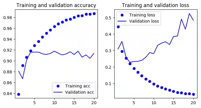 效果一下子出来了,训练精度 98.71% 但是验证精度只有 91.36%,明显的过拟合。画个图看的更明显。