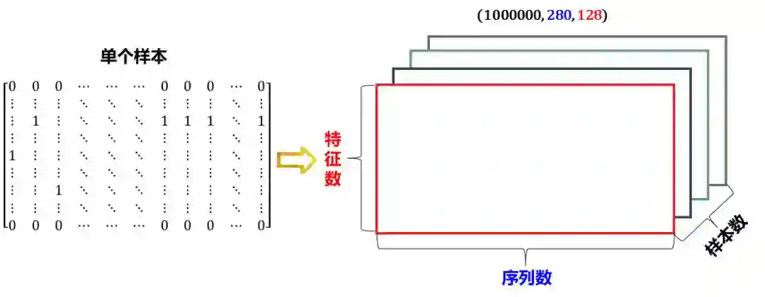推特 (twitter) 的每条推文 (tweet) 规定只能发 280 个字符。在编码推文时,将 280 个字符的序列用独热编码 (one-hot encoding) 到包含 128 个字符的 ASCII 表,如下所示。
