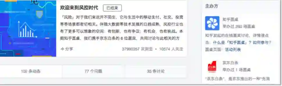 例如,京东白条曾做过一场风控主题的圆桌以显示京东白条的专业度。其中一个问题就是,电商公司的风险控制与反作弊是做什么的?需要哪些技能与知识?这一场圆桌累计浏览量 37,990,357 次浏,达到了非常好的传播效果。