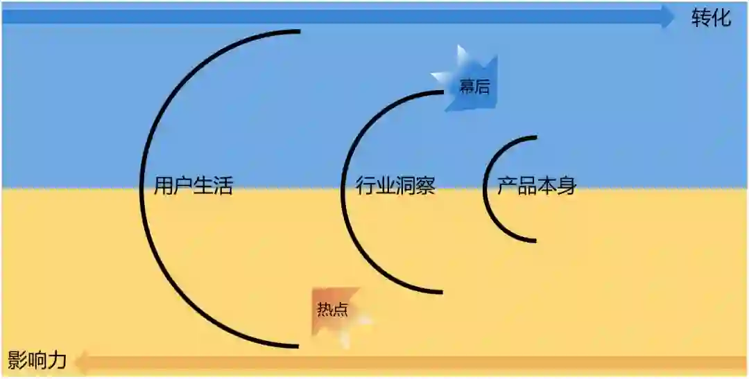 最内核是产品本身相关的知识,然后后行业洞察,再外延是目标人群的生活方式。在这个链路中,幕后故事和热点是借力的部分,是声波的催化剂、加速器。
