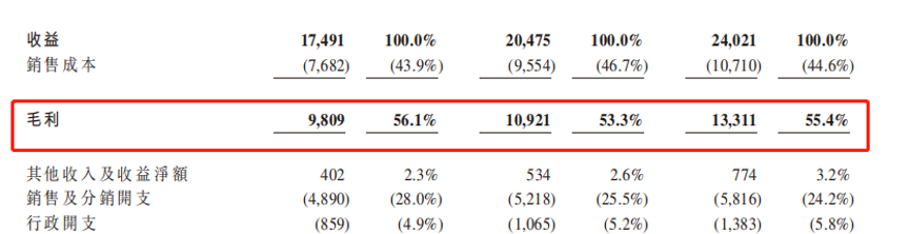 而另一方面,在渠道的铺设上,凭借其品牌力和价值导向来推动产品销售,公司在经销商面前有着很强的话语权。招股书显示,截止2019年底公司经销商覆盖237万个以上的终端零售网点,78.9%覆盖三线及以下城市。