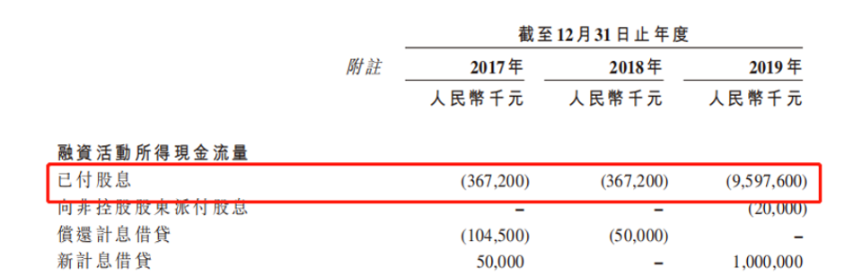 2017-2019年农夫山泉已付股息情况(来自招股书)