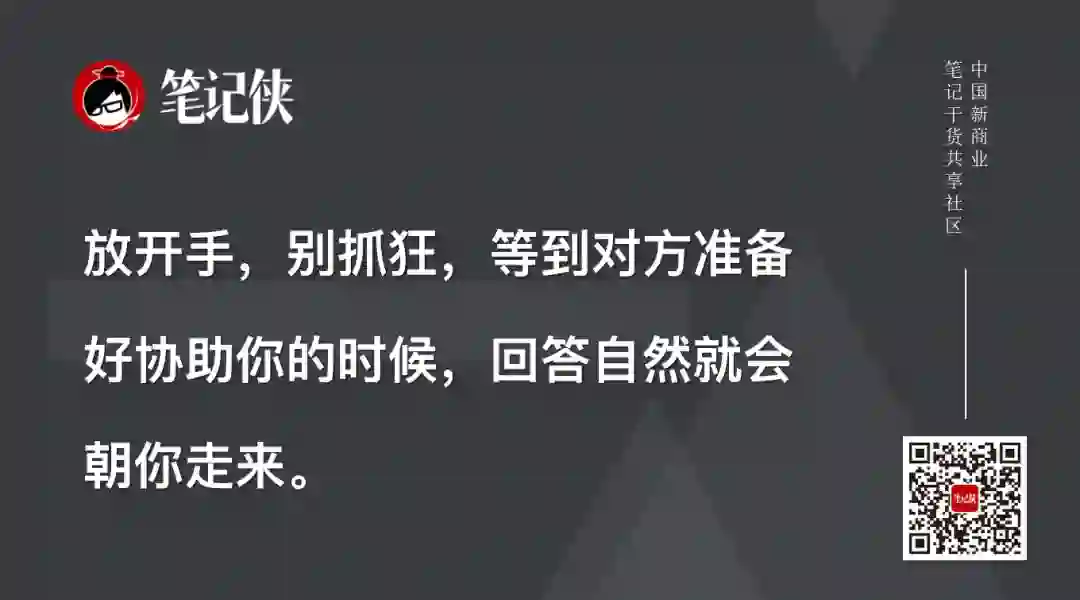 放开手,别抓狂,等到对方准备好协助你的时候,回答自然就会朝你走来—这里面几乎蕴含着一种禅意。