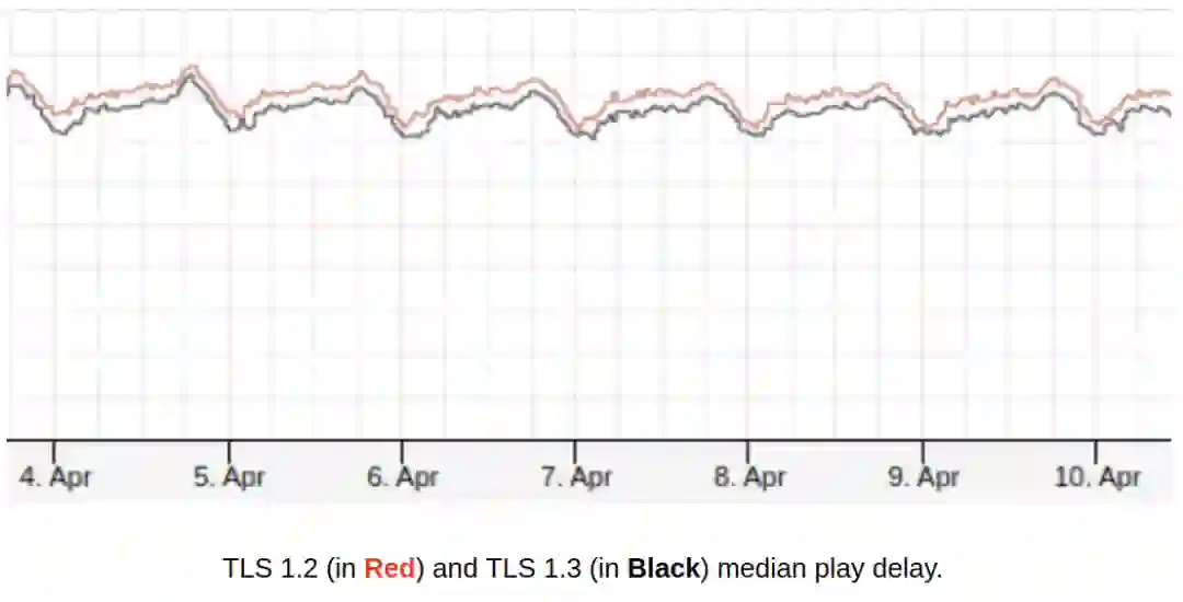 从安全性分析来看,我们相信 TLS 1.3 的通信安全性比 TLS 1.2 高。从现场测试来看,我们相信 TLS 1.3 能为我们提供更好的流媒体体验。