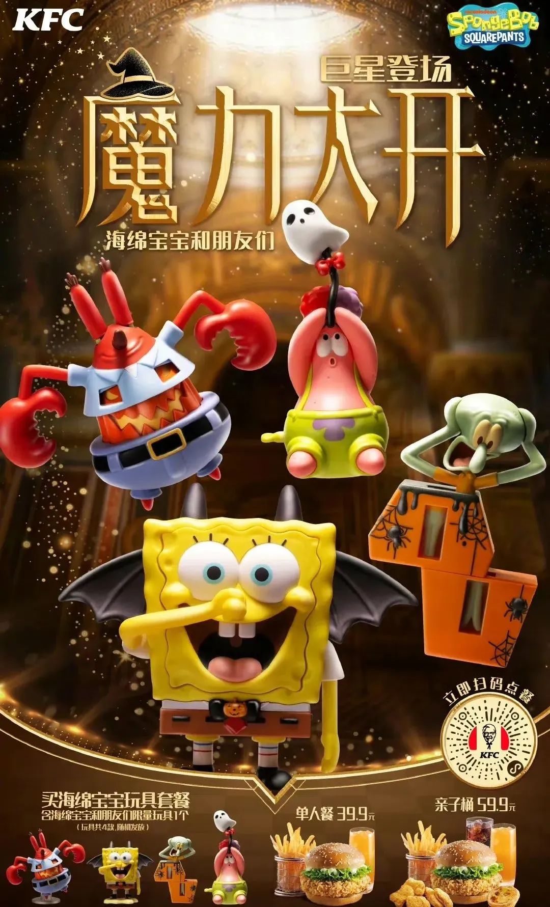 海绵宝宝玩具套餐不仅可爱,还有设计小巧思,比如海绵宝宝的脸打开来写着“trick or treat”,蟹老板身体拉开是南瓜鬼脸。对小朋友来说稍显幼稚,对大朋友来说刚刚好。