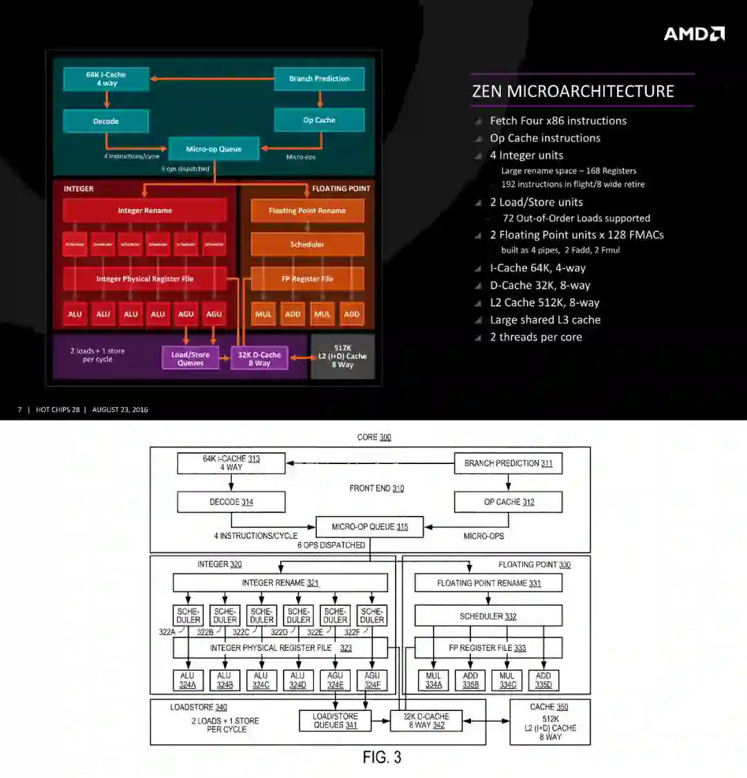 这个说法倒是可以在专利的引用部分得到佐证,其中就包括了2016年8月AMD在HotChips上有关Zen架构的演讲PPT。
