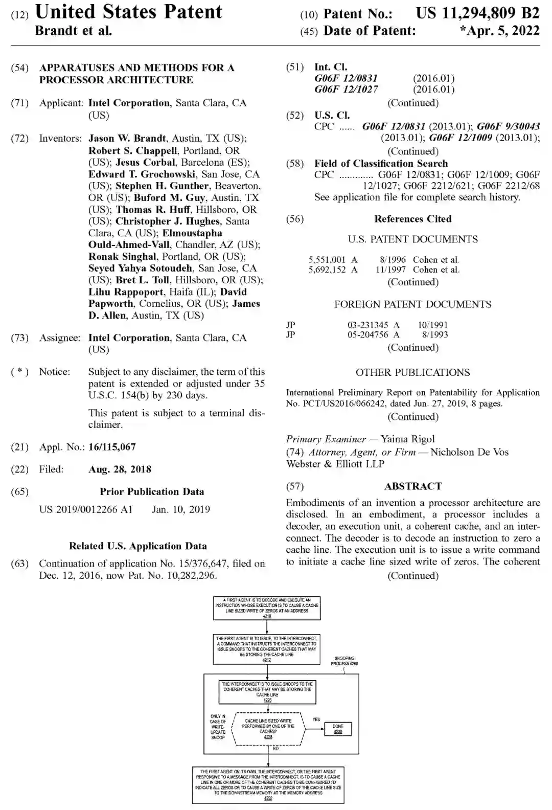 今天的另一位主角,也就是英特尔编号为US 11,294,809 B2的专利,于2022年4月5日得到通过。