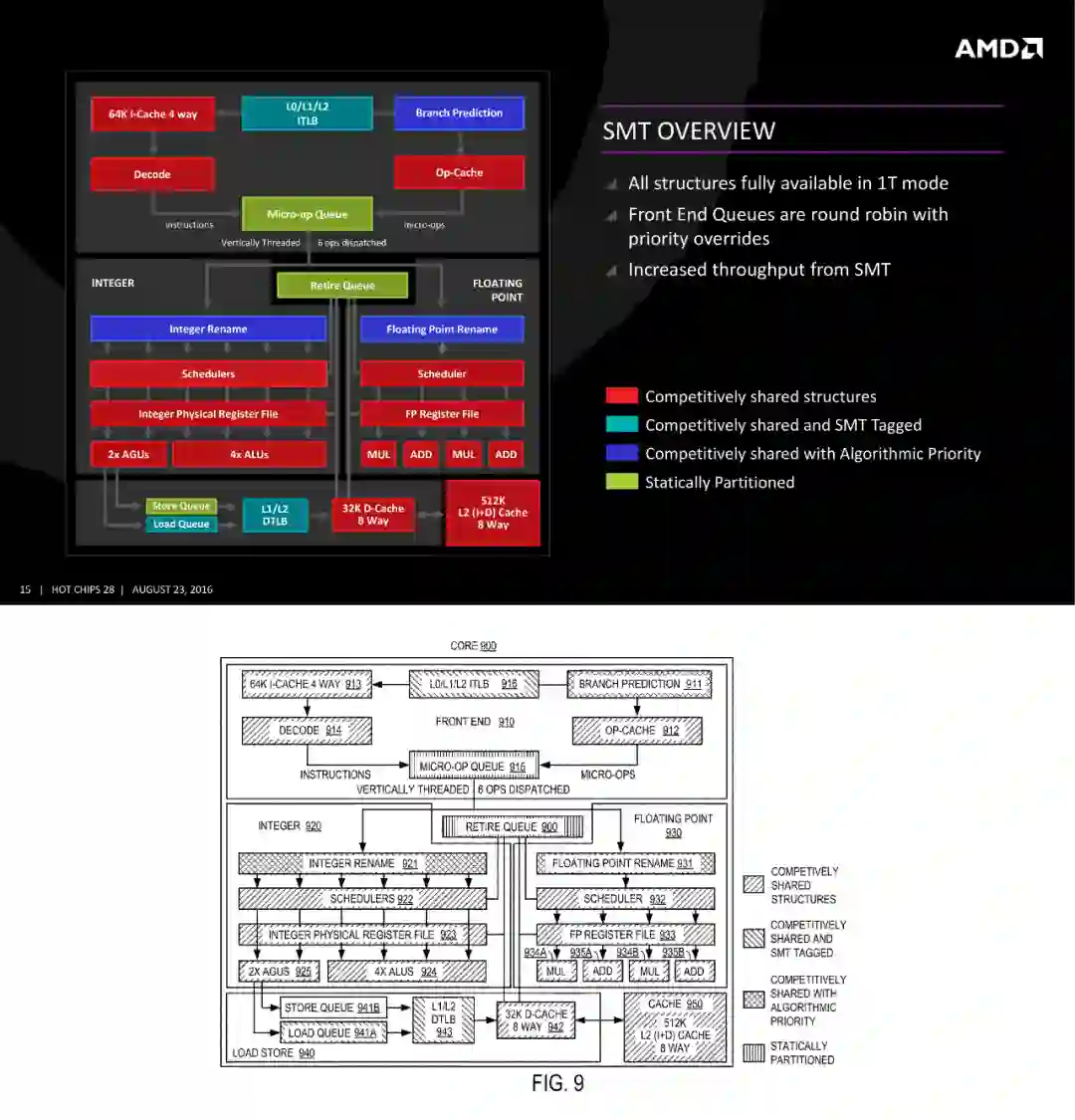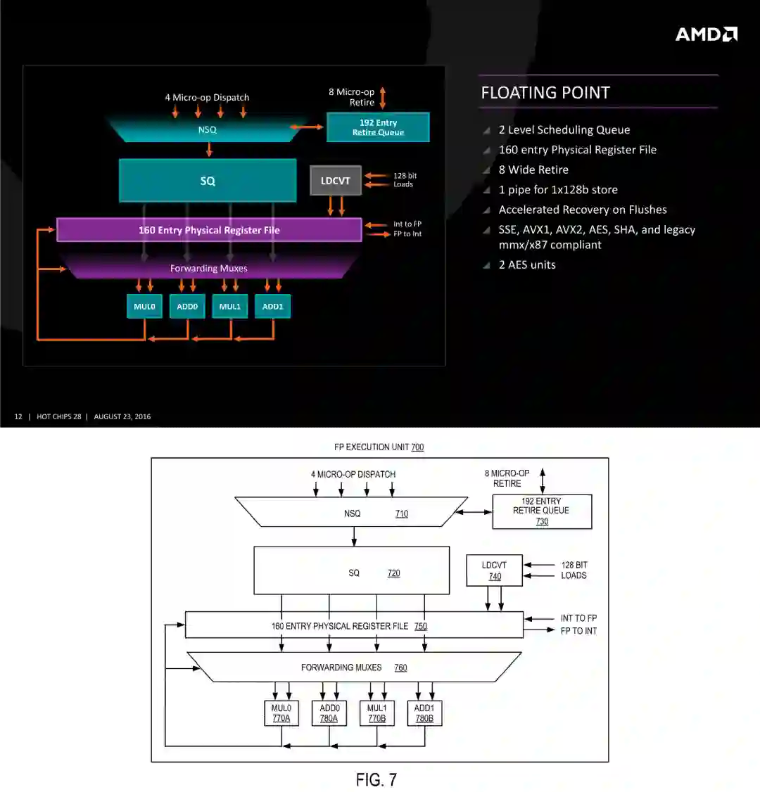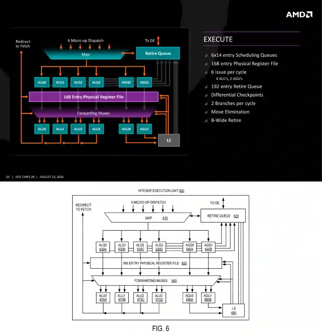 上图为AMD在2016年8月发布的Zen微架构,下图为英特尔在2022年获取的专利。