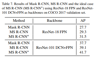 同时作者还做了实验探索Mask Scoring R-CNN的性能上界。