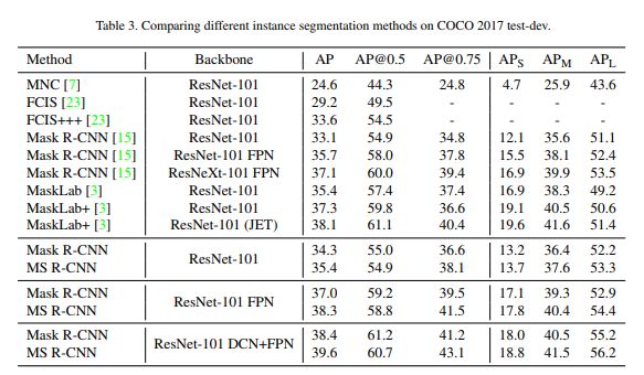 实验结果,在COCO 2017 test集上,相对于Mask R-CNN,mask AP有1个点多的提升。