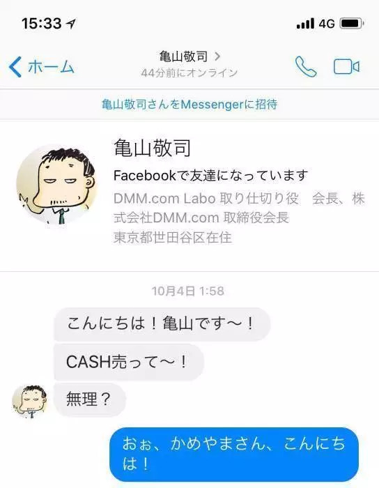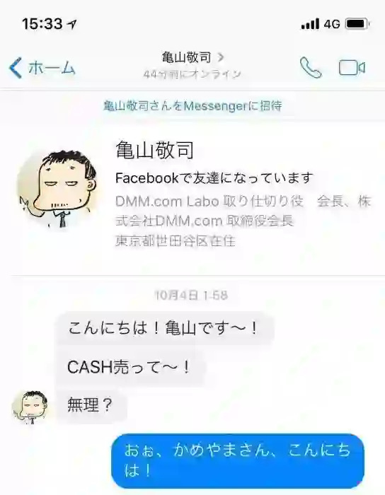 2017年末,DMM收购了新成立不久的二手商品交易网站CASH。让人惊讶的是,龟山只是在facebook上私聊了两句“你好我是龟山!公司出售吗?不可以吗?”就谈成了这笔交易。