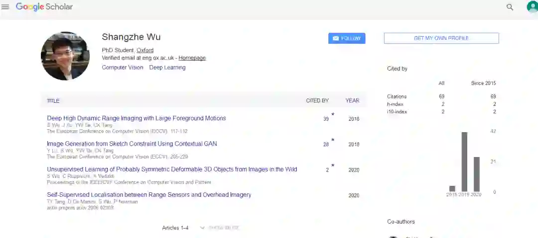 前面也提到,这篇CVPR 2020 最佳论文有三位作者,他们都来自牛津大学,其中吴尚哲在2018年从香港科技大学毕业后进入牛津视觉几何组,进行计算机视觉领域的研究。