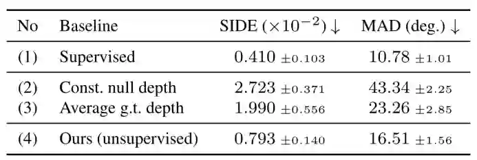 作者的方法在BFM数据集上重建得到的的SIDE误差和MAD误差明显优于baseline并且接近完全监督