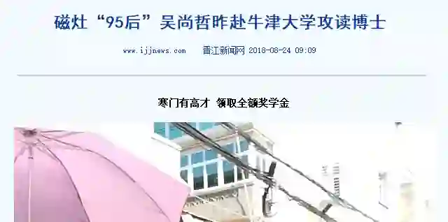 当他进入赴牛津大学攻读博士时候,他的家乡晋江对他进行了报道,晋江新闻网说: