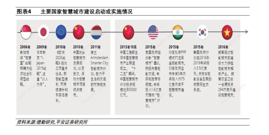 中国于2013年开始启动智慧城市建设,据德勤研究数据,截至2017年中国智慧城市数量达到 500 个,已经远超欧洲、美国等地区。