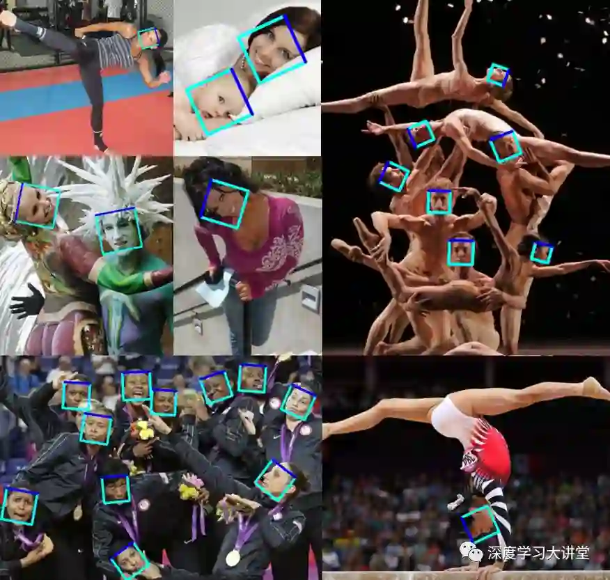 另外一种策略就是分治。可以训练一个竖直人脸检测器,在测试阶段,将待检测图像旋转多遍进行检测,这样也可以实现任意旋转角度人脸的检测。竖直人脸检测器的计算量是相对较小的,但是检测多次也会使得时间开销成倍增长,而且带来更多的误检测。