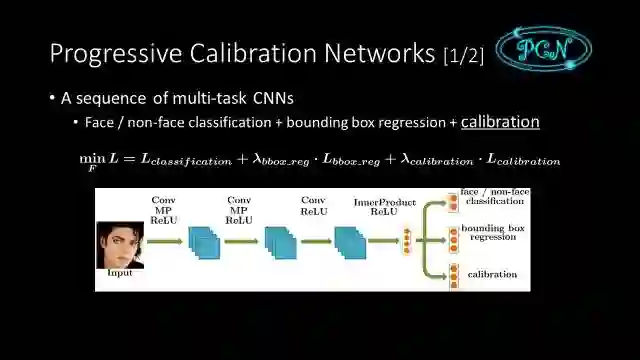 在CVPR 2015上提出了Cascade CNN人脸检测方法,即通过级联多个CNN逐步过滤非人脸样本。之后提出的MTCNN对Cascade CNN改进,将分类、边框回归、特征点三个任务合并,利用不同任务相关性实现多任务学习提升性能。Cascade CNN、MTCNN算法在竖直人脸检测上可以实现出很好的效果,但在旋转不变人脸检测上仍有提升空间。我们的PCN由CNN级联组成,这点借鉴于Cascade CNN。PCN中的每一级CNN都是一个多任务网络,同时学习人脸非人脸判别、边框回归、旋转角度校准三个任务。