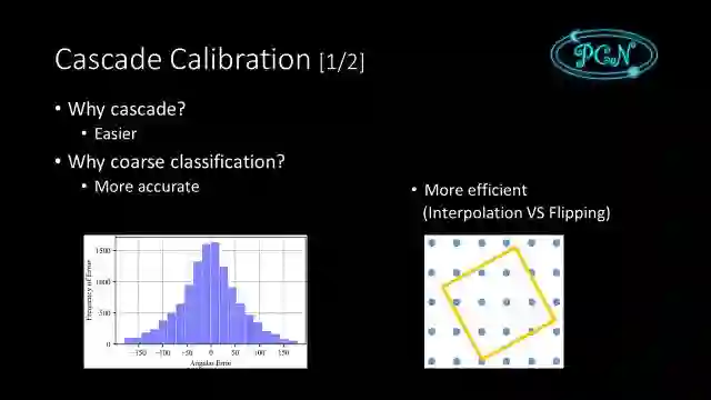 级联校准模式,将难度较大的旋转角度预测分解为多个任务,每一个任务都会比较简单,这使得整个校准的难度降低。在第一级和第二级只预测粗糙朝向有两个原因,第一是粗糙朝向预测的精度更高,刚开始就直接回归角度误差会很大;第二是可以避免倾斜的图像crop操作,可以大大提高速度。