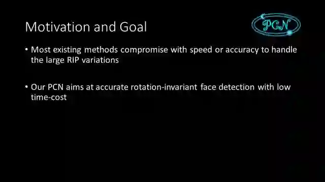目前的许多旋转不变人脸检测算法需要在精度或者速度上进行妥协。我们提出的PCN算法目标是在保持很低的计算量的前提下,实现精准的旋转人脸检测。