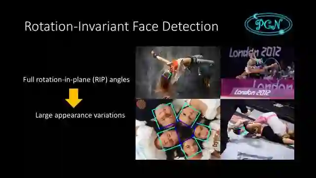 在体操、街舞、家庭合影等复杂的应用场景,由于人体姿态和取景角度的变化,人脸不总是竖直的,有可能有各种各样的平面内旋转角度。旋转不变人脸检测算法目标是精确的检测这种旋转的人脸。多样的平面内旋转角度,使得人脸的表观变化非常大,为旋转不变人脸检测带来了极大的挑战性。