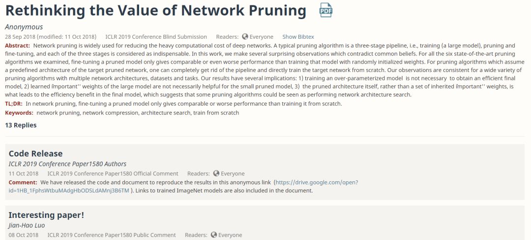 参考内容:https://www.reddit.com/r/MachineLearning/comments/9q5t92/r_recent_rethinking_the_value_of_network_pruning/