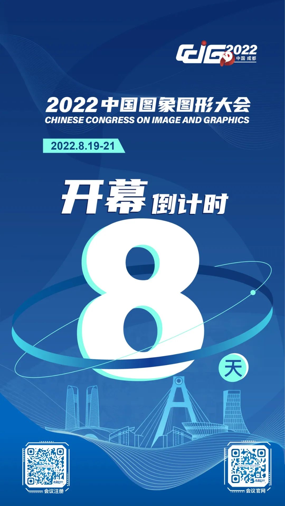 中国图象图形大会(CCIG 2022)将于2022年8月19-21日在成都盛大举办,大会以“图象视界,形智未来”为主题,由中国科学技术协会作为指导单位、中国图象图形学学会主办、四川大学承办、电子科技大学协办。