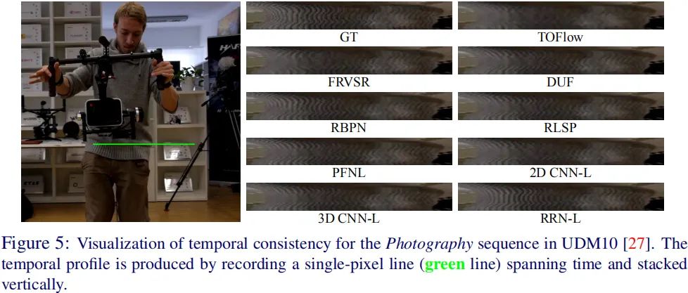 作者同时还对比了不同建模方案的时序一致性,见下图。RRN方案可以生成时序一致的结果同时具有更少的伪影问题。