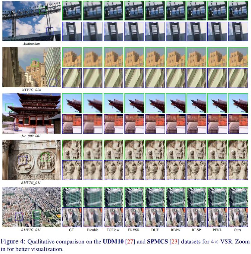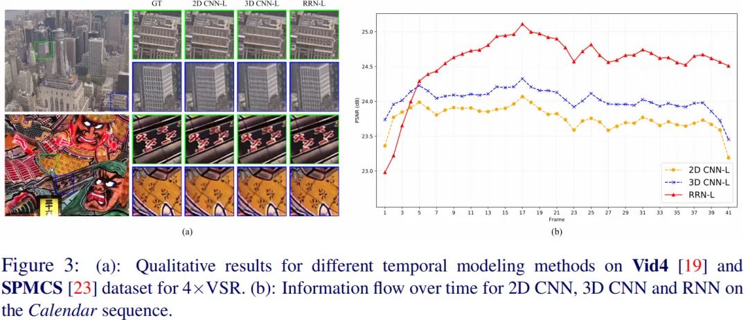 该文仔细研究并对了视频超分中的三种时序建模方案(2D-CNN, 3D-CNN, RNN),同时还提出了一种新颖的递归残差模块用于高效视频超分,其中残差学习用于稳定训练并提升超分性能。