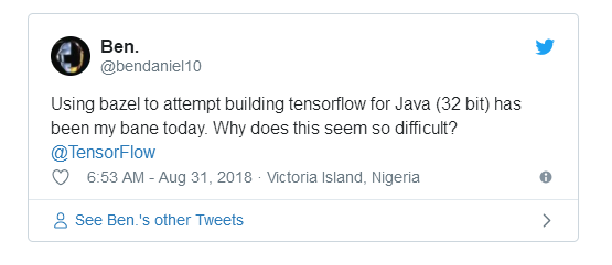 在这个项目中,我面临的最大挑战是尝试使用Bazel从源代码构建用于32位系统的Tensorflow Java库。整个过程实在是跌跌撞撞。