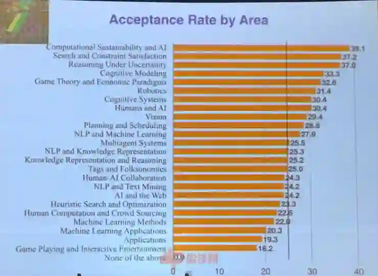 AAAI 2017 在博弈论领域的论文录取率最高,达到 0.38,而 NLP 领域的录取率相对较低,只有 0.21;而今年看来,「计算持续性与 AI」、「搜索及约束满足」、「不确定性推理」等领域的录用率相对较高,达到 0.37 以上;而去年录用率较低的 NLP 领域,录用率则有了相对的提升。