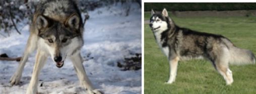 对于神经网络的工作原理,有一个形象的例子,那就是哈士奇还是狼(husky or wolf)的问题[1]。大部分人都可以很正确地判断出左图中的动物是狼,而右图中的动物是哈士奇,这两个图对人而言还是相对不难。不出意外地,神经网络模型也能够把这两张图分得很准。