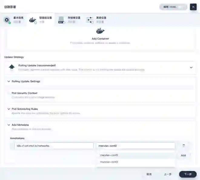 英特尔帮 KubeSphere 企业版实现了网络功能增强,通过开发并开源 Multus 的 CNI 插件、提供“将多个接口添加到 Pod”的功能,成功解决了因 Kubernetes 缺乏支持多个网络接口能力,而受制于单一网络解决方案的企业用户的需求。如今的 KubeSphere 企业版在优化后的 Intel Multus 解决方案的助力下,实现了更强大、更多元的网络管理和扩展能力,支持用户在创建应用负载时可以自定义选择多块网卡,同时支持网卡资源池管理。