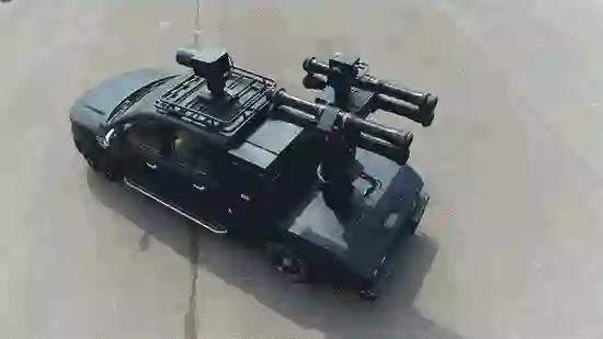 图为车载“网电”双模拦截系统拦截高速飞行的固定翼目标