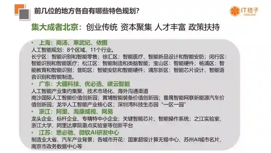 我们简单看下几个重点省市对于 AI 发展的具体特点或者说动作。