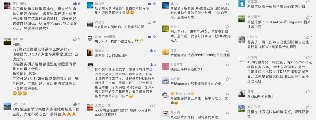 2019年 4 月,阿里云联合 CNCF 发布了《CNCF X Alibaba 云原生技术公开课》,课程发布至今已可统计学习者 12万,在收到学习者“点赞”的同时,我们也对学习者的学习需求以及痛点进行了调研和采访,几乎课程学习者反馈的关键词都落在了“实践”这两个字上,具体有以下 3 个问题: