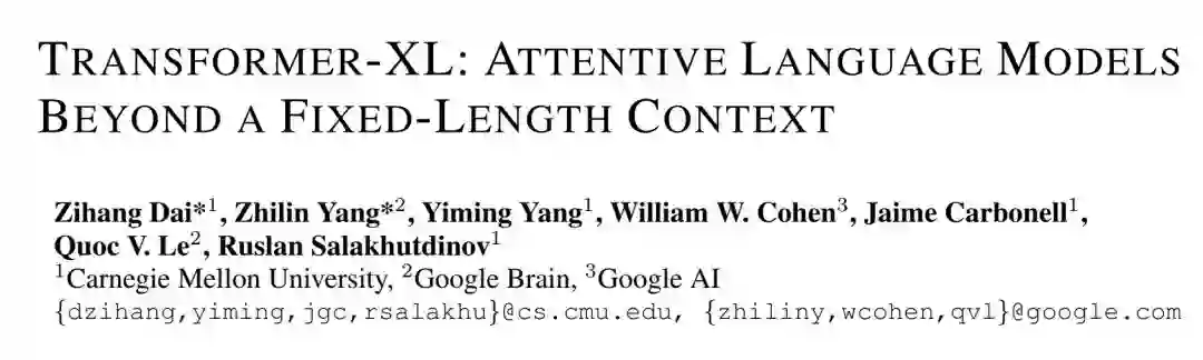 以往的 Transformer 网络由于受到上下文长度固定的限制,学习长期以来关系的潜力有限。本文提出的新神经架构 Transformer-XL 可以在不引起时间混乱的前提下,可以超越固定长度去学习依赖性,同时还能解决上下文碎片化问题。