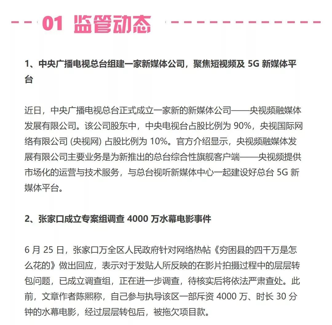 以下是 6 月 20 日至 6 月 26 日,IT 桔子文娱周报全文: