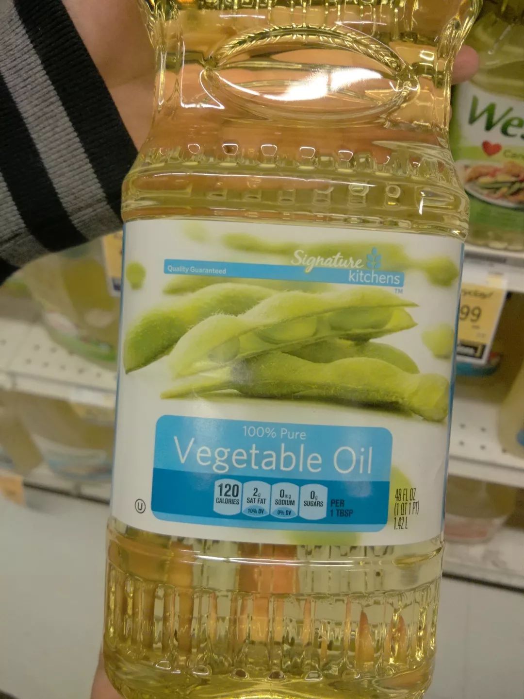 图1:Vegetable Oil(植物油),有大豆图案,为大豆油。无“转基因”标识。