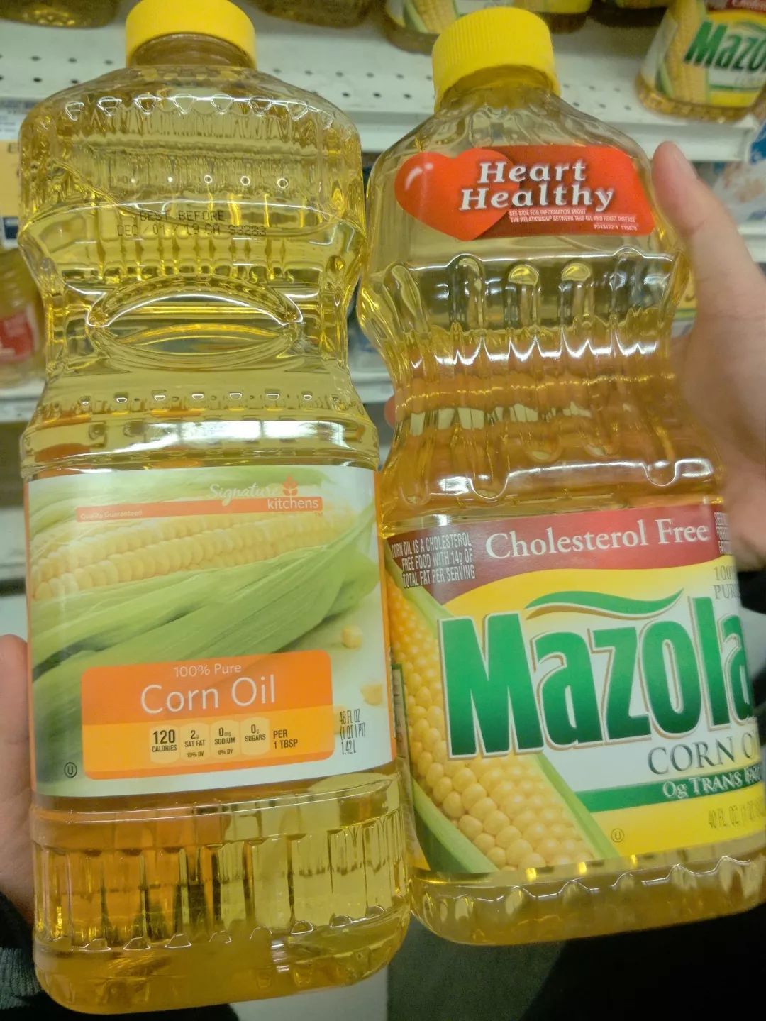 图2:左为Corn Oil(玉米油),右为Mazola(玉米胚芽油)。都没有“转基因”标识。