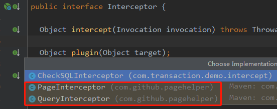 引入 pageHelper 后可以看到 Interceptor 的多了两个实现: