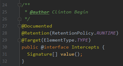 所以在本文示例中 @Signature 的 type 字段就是 Executor.class。