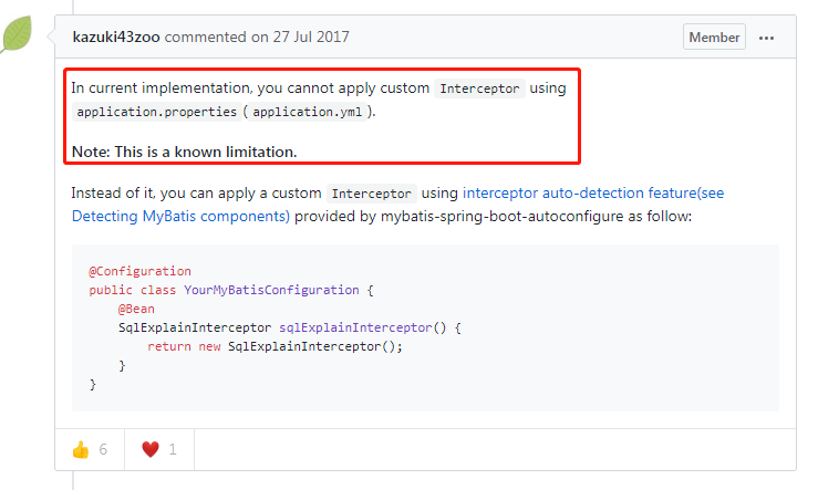 如果你有自定义的 SqlSessionFactory,那么请手动调用 factory.setPlugins 方法。