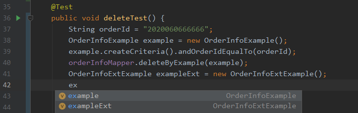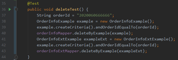 我们假设现在表里面的这条订单号为 2020060666666 的数据经过判断是错误数据,我当时写的代码体现在单元测试里面是这样的:
