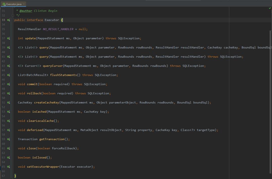 1. Executor (update, query, flushStatements, commit, rollback, getTransaction, close, isClosed)