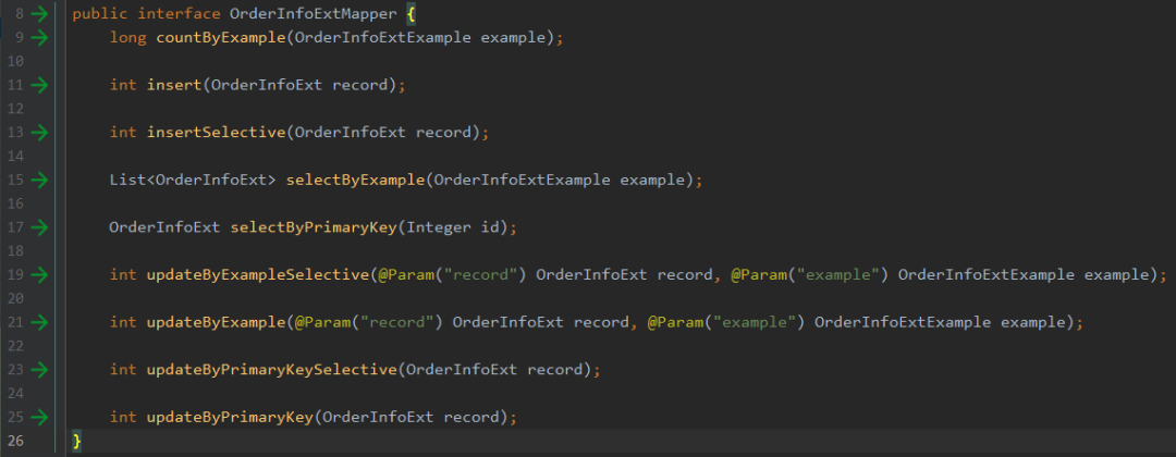 我相信用过 mybatis 逆向工程的朋友们,一看到这几个接口就知道了:哟,这都是老朋友了。