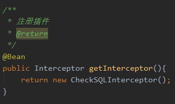 2. 如果没有自定义 SqlSessionFactory 直接 @Bean 注入拦截器即可。