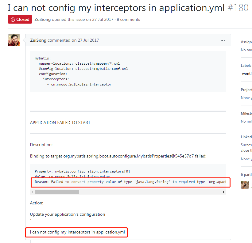Failed to bind properties under 'mybatis.configuration.interceptors' to java.util.List<org.apache.ibatis.plugin.Interceptor>