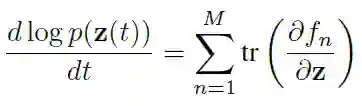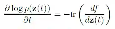 本文讨论了归一化流在连续域中的扩展。有趣的是,这简化了归一化常数的计算。如果我们让随机变量在时间上是连续的,用函数 f 描述时间的变化(f 是 Lipschitz 连续的),则概率的对数变化遵循简单的微分方程: