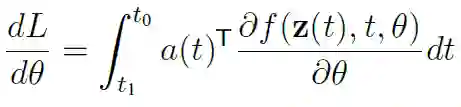 计算梯度 (上述方程要求的第一个梯度)现在可以通过向后求解增强的 ODE 来完成。为了完整性,下面的公式说明了如何计算神经网络函数参数的梯度 w.r.t: