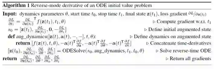 数值求解一个 ODE 通常是通过积分来完成的。多年来,人们发明了很多积分方法,包括简单的 Euler 方法和 Runge-Kutta 方法的高阶变种。然而,这些方法在计算上都是相当密集的。在训练过程中尤其如此,它需要对积分步骤进行微分,以便能将网络参数θ的所有梯度相加,这会导致较高的内存成本。